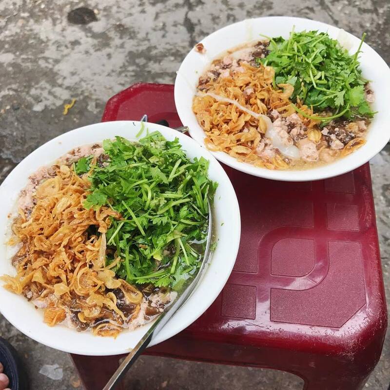 Mỗi lần đọc tên quán nào muốn líu lưỡi khó đọc, nhưng mùi vị bánh đúc nóng Hà Nội ở đây cũng khiến bạn khó lòng mà ngừng lại được. Bánh rất ngon, vô cùng mềm mịn, nước mắm pha chan lên vị mặn ngọt vừa phải kết hợp cùng nhân thịt băm thấm vị.