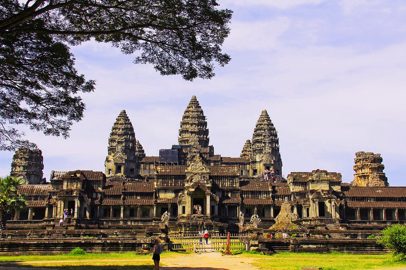Địa điểm tour Campuchia đầu tiên đó chính là Quần thể di tích đền Angkor Wat. Mỗi năm, hàng nghìn lượt khách tìm đến đây để tham quan. Đặc biệt, quần thể này đã được Unesco công nhận là 1 trong 7 kỳ quan thế giới. Được xây dựng vào thế kỷ 12 dưới thời vua Suryavarman II, quần thể đền có quy mô lên đến 400km2 nhằm thờ cúng Phật giáo.