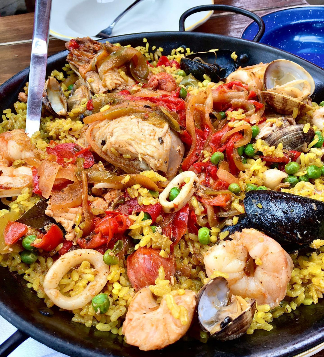 Bạn có thể thưởng thức các món ăn đặc trưng của Cuba như: Paella Habana, Quesadilla, Jamon Serrano con dưa, Cá hồi nướng và mù tạt Parillada de un khi đi tour Cuba.