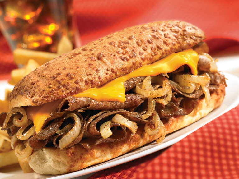 Cheese Steak – bánh mì bò nổi tiếng ở thành phố Philadelphia, bang Pennsylvania là món ăn ngon chỉ có tại Mỹ. Loại sandwich này gồm có một ổ bánh mỳ được xẻ làm đôi, kẹp một miếng bít tết mỏng nướng vỉ với hành tây và phủ phô mai lên trên.