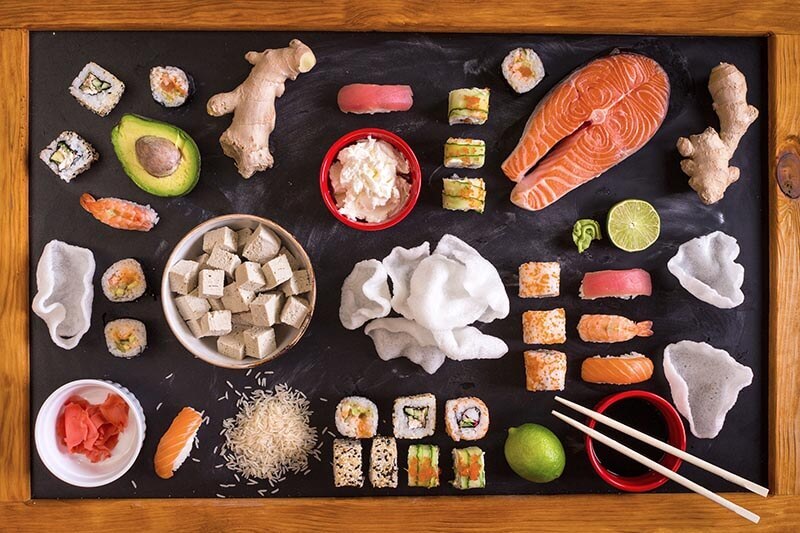Nguyên liệu chính để làm món Sushi là sự kết hợp của shari (cơm trộn giấm) và các nguyên liệu chủ yếu là hải sản. Rong biển, trứng cá hồi cũng là một lựa chọn hoàn hảo. Ngoài ra, còn có rất nhiều loại sushi rất ngon khác mà bạn cũng không nên bỏ qua khi đi du lịch Nhật Bản đâu nha!