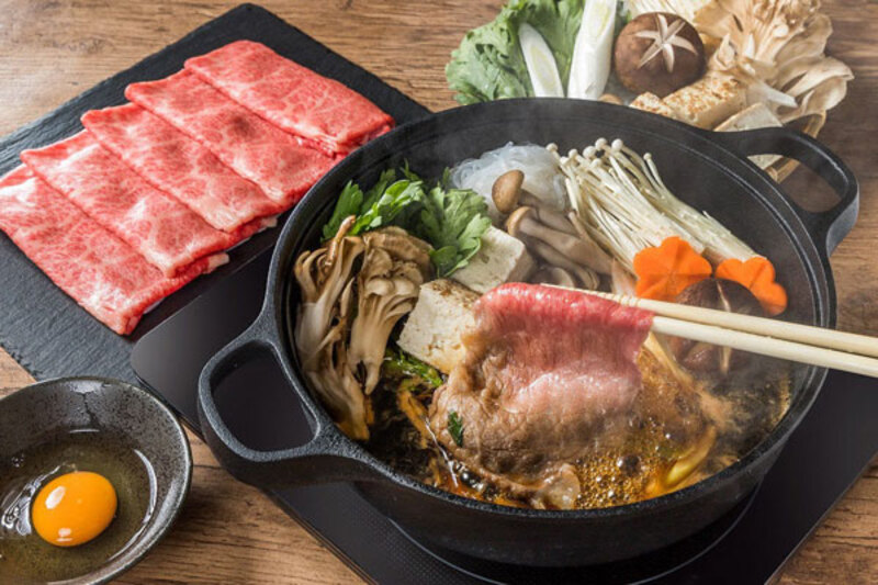 Chỉ một số nhà hàng chuyên về ẩm thực xứ hoa anh đào mới phục vụ món ăn đặc biệt này. Nguyên liệu chính của món lẩu nấu tại bàn bao gồm loại thịt bò Nhật thượng hạng Wagyu, nước dùng mang vị ngọt tự nhiên của nhiều nguyên liệu, gia vị và ăn cùng rau củ quả, nấm nhiều dinh dưỡng.