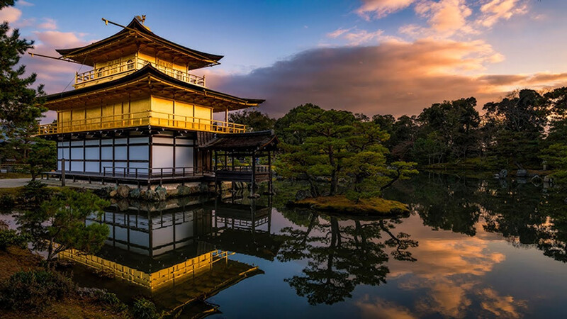 Đền Kinkaku – ji ẩn mình giữa thiên nhiên núi rừng xanh thẳm. Điểm tour Nhật Bản nổi tiếng với lối kiến trúc độc đáo khi hòa quyện ba nền văn hóa khác nhau. Không những thế, sắc vàng của ngôi đền phản chiếu dưới mặt hồ yên ả trong tiết trời mát mẻ sẽ khiến bạn bình tâm và thư thái.