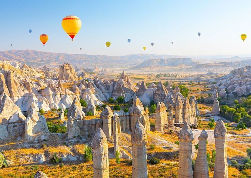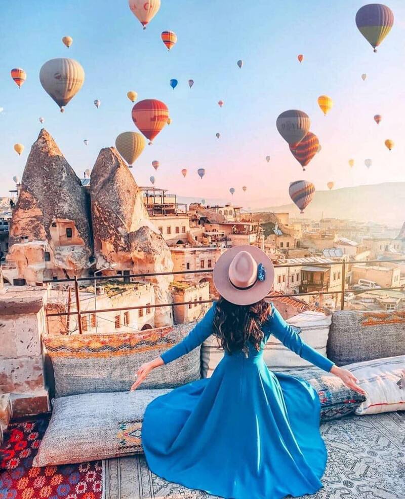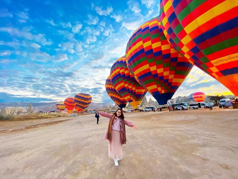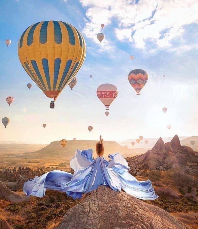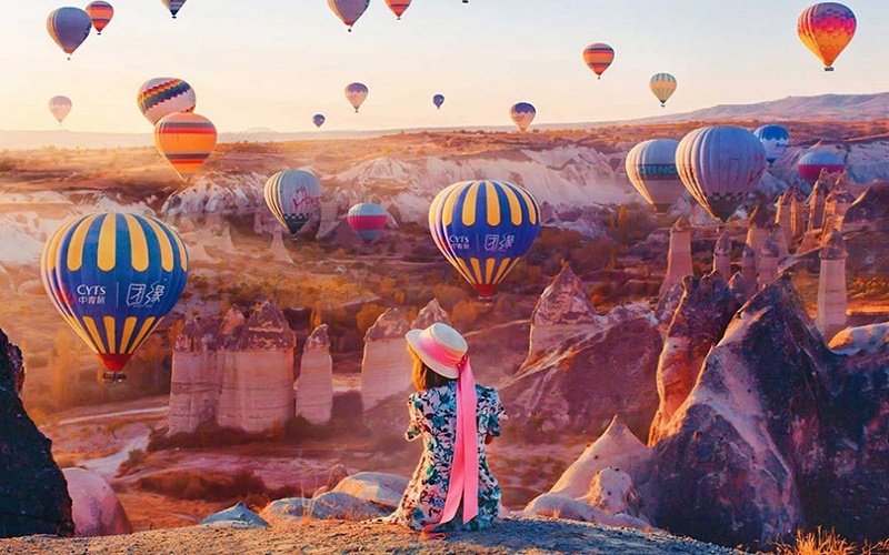 Du khách đi tour du lịch Thổ Nhĩ Kỳ đều ưa thích trải nghiệm ngồi ở khinh khí cầu để tận hưởng cảm giác thu trọn toàn bộ cảnh sắc của thung lũng Cappadocia. Vào dịp diễn ra lễ hội, bạn còn được ngắm nhìn hàng trăm chiếc khinh khí cầu rực rỡ sắc màu bay trên bầu trời xanh cao, góp phần điểm tô cho không gian thêm phần lãng mạn.
