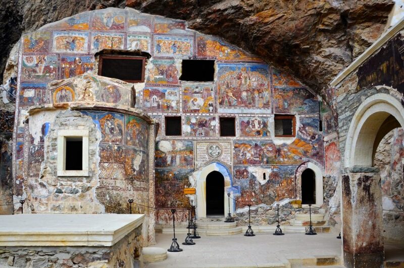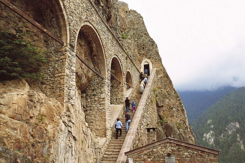 Nằm ở độ cao 1200m so với mặt nước biển, Tu viện Sumela là điểm đến nằm trong lịch trình đi tour du lịch Thổ Nhĩ Kỳ của mỗi du khách. Tu viện này gây ấn tượng với vẻ đẹp độc lạ khi nằm treo lơ lửng trên vách đá, phía trước là thung lũng.