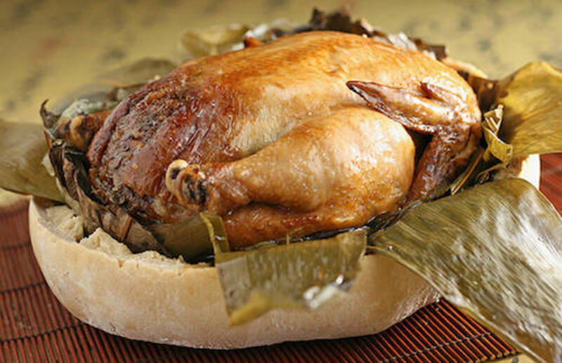 Gà ăn mày mang hương vị thơm ngon đặc trưng, đặc biệt khi được gói trong một lớp lá sen dày, thực sự làm nổi bật hương vị của món ăn.