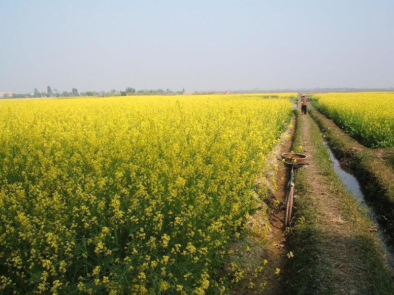 Tour Bắc Ninh những ngày giông sẽ đưa bạn đến những bãi bồi ven đê sông Đuống, sông Cầu,… nơi mà những cánh đồng hoa cải vào vụ nở vàng khắp chân đê. Từ trên cao nhìn xuống là cả một không gian bạt ngàn sắc vàng với những cánh bướm chập chờn.