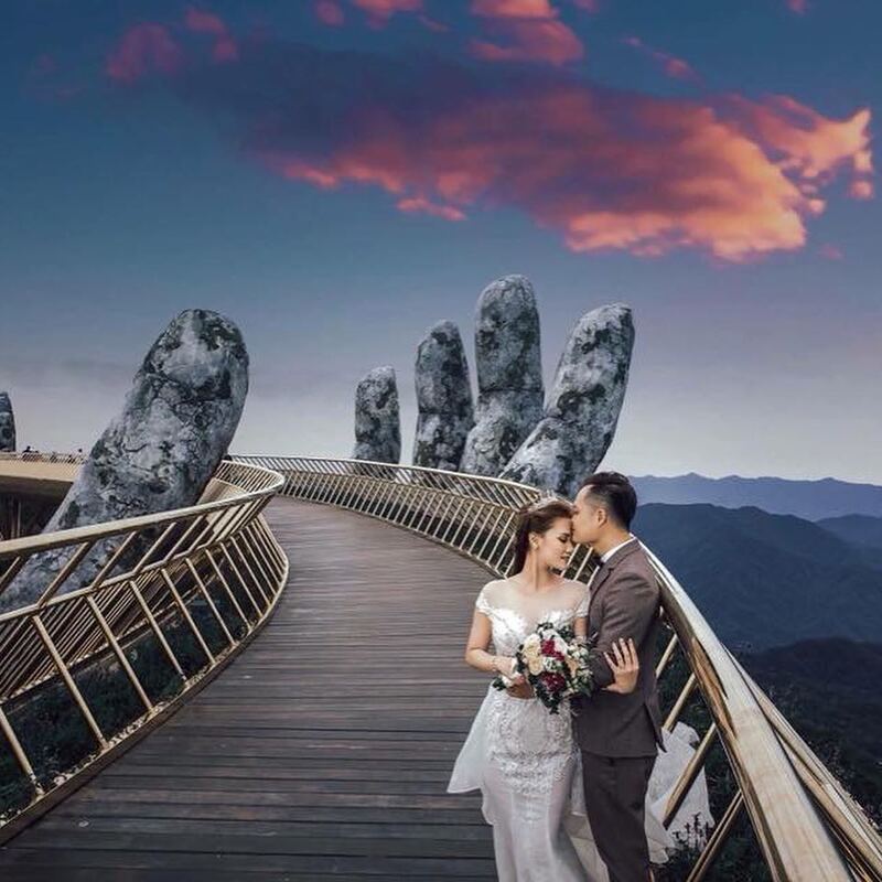 Khoảnh khắc bình minh và hoàng hôn là hai thời điểm cực lý tưởng để tới khám phá Cầu Vàng. Thời tiết trong trẻo, mát mẻ giúp du khách thỏa thích sống ảo với các bức hình cực đẹp làm kỷ niệm. Với vẻ đẹp hùng vĩ và lãng mạn, địa điểm du lịch Đà Nẵng trở thành nơi lý tưởng để các cặp đôi lưu giữ lại khoảnh khắc đẹp của cuộc đời.