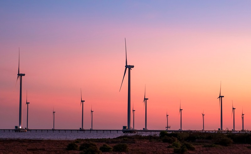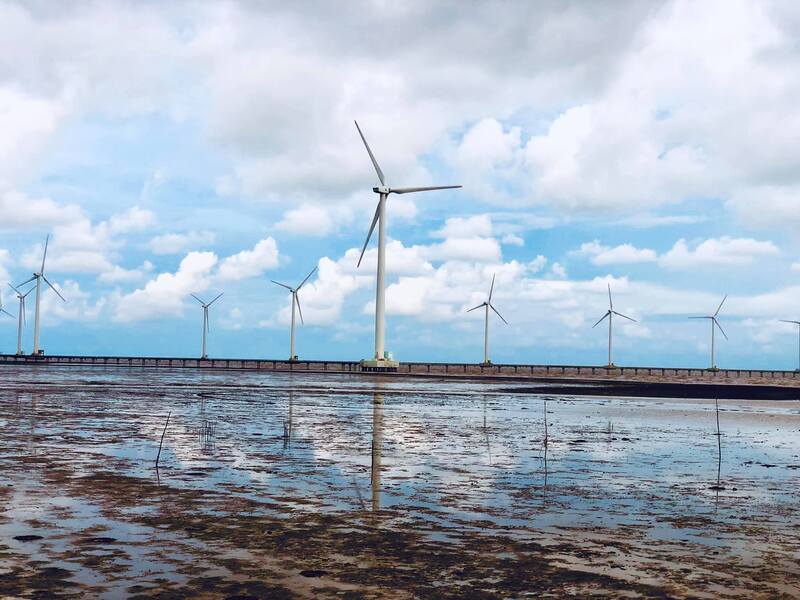 Giữa nền xanh của nước biển và bầu trời những chiếc tua bin gió khổng lồ hiện lên sừng sững tạo thành những khung cảnh tuyệt đẹp không khác gì khung cảnh ở châu Âu.