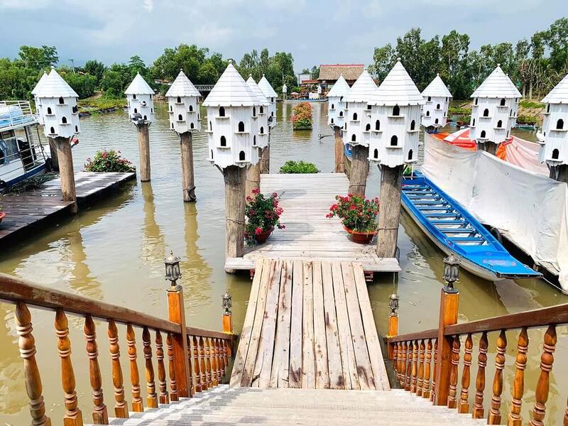 Ấn tượng đầu tiên của khách tour miền Tây khi bước chân vào rừng tràm là khung cảnh thiên nhiên xanh tràn đầy sức sống. Bến thuyền ở đây cũng khá đặc biệt với những lối bậc thang gỗ nổi trên mặt nước, những chiếc cột cao là những chiếc tổ chim bồ câu trắng trông rất xinh xắn.