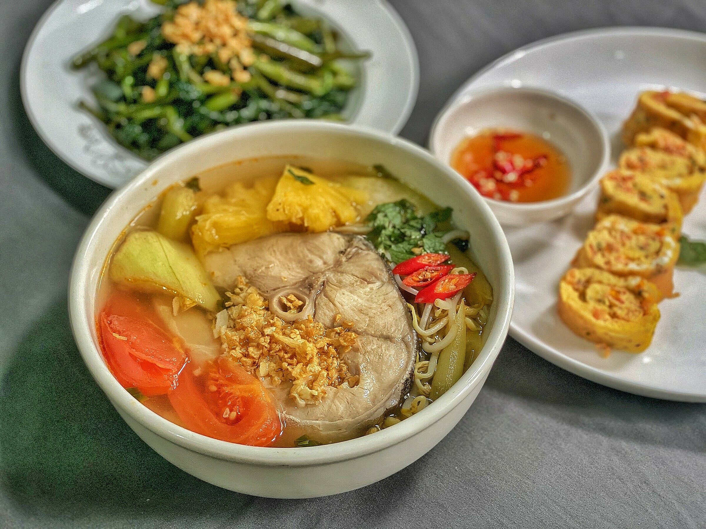 Đi tour du lịch Nam Du, chắc chắn bạn sẽ không khó để bắt gặp hình ảnh du khách thập phương đang xì xụp bên tô canh chua cá bớp đang bốc khói thơm lừng khó cưỡng.