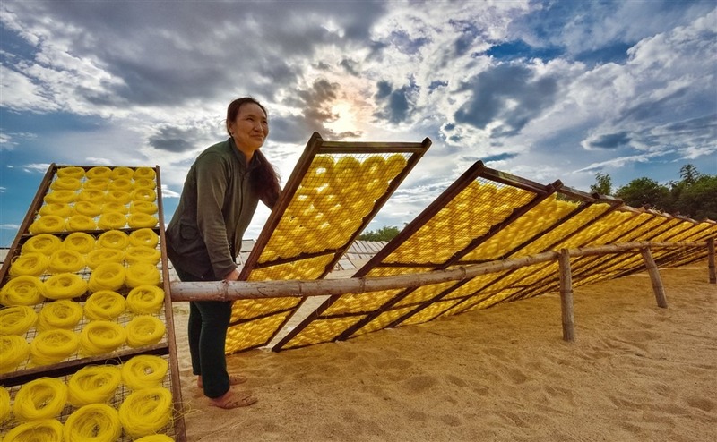 Bánh dây là một món ăn dân dã mà nhiều người đi Tour Du Lịch Quy Nhơn thường hay lựa chọn thưởng thức. Cách làm khá đơn giản được người dân bán tại quán tiệm ăn nhỏ hoặc bán rong trên đường. Món ăn này là sự kết hợp của bánh dây, hành phi thơm và ăn kèm với rau sống vô cùng thơm ngon.