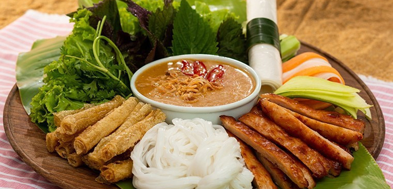 Bạn hãy đến, cuộn một miếng nem lụi đầy ú ụ cùng những đồ ăn kèm và chấm trong nước sốt sền sệt, thơm ngon, bùi bùi của ít đậu phộng. Chỉ nghĩ đến thôi đã khiến nước miếng tuôn không ngừng rồi.