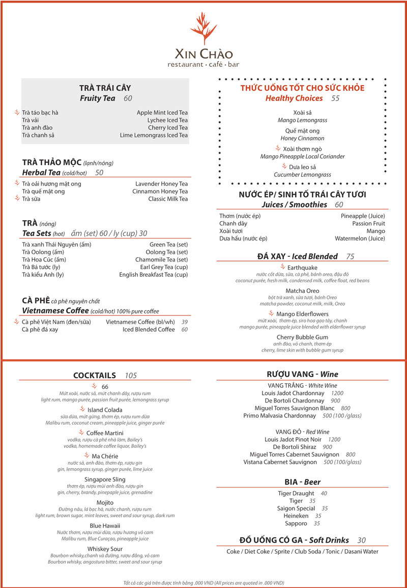 Sinh tố xoài, sinh tố bơ …– Và không thể kể đến các sinh tố tại quán, đều được lựa chọn và chế biến rất hấp dẫn chuẩn vị hoa quả tươi.