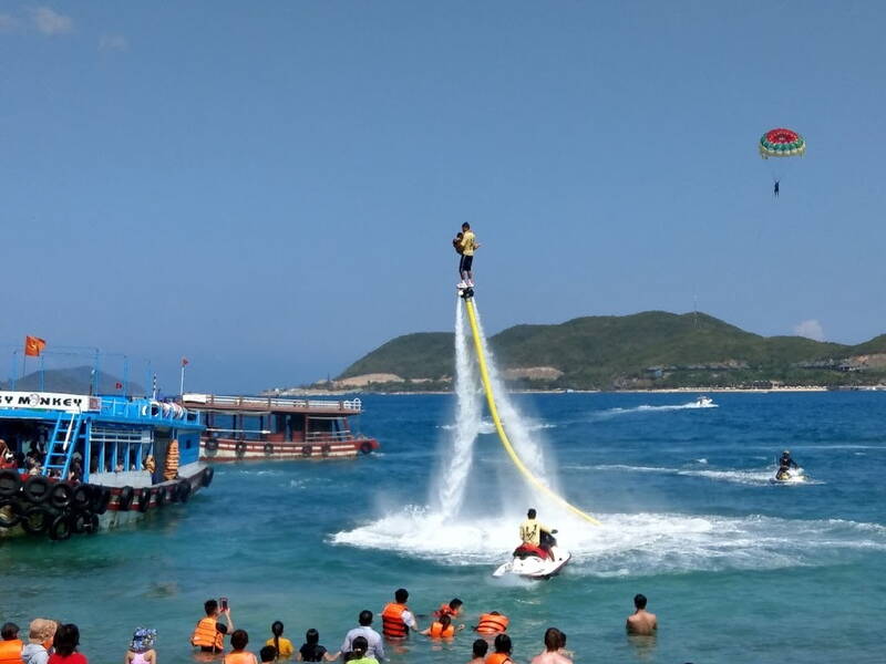 Đi tour đảo Nha Trang tới đây du khách không chỉ được đắm mình trong làn nước mát, trong veo của vùng biển nơi đây mà còn được tham gia trải nghiệm các trò chơi siêu thú vị như mô tô nước, Flyboard, chơi dù bay,…