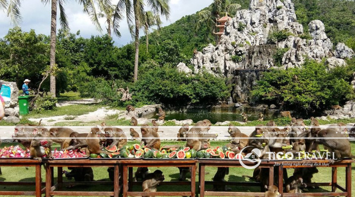 - 13h30: Quý khách di chuyển đi đến vương quốc đảo Khỉ. Thưởng thức các chương trình xiếc với động vật thủ vai chính như Khỉ, Chó, Dê. Tiếp xúc với đàn Khỉ tự nhiên hơn 1500 con và chiêm ngưỡng những công trình nghệ thuật.