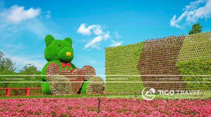 • Tham quan vườn: Rau thuỷ canh, bí thiên nga, bí ngô khổng lồ, dâu Tây công nghệ cao + dưa leo baby, dưa pepino + cà chua cherry,vườn dương xỉ, vườn sen đá, xương rồng, các vườn hoa
