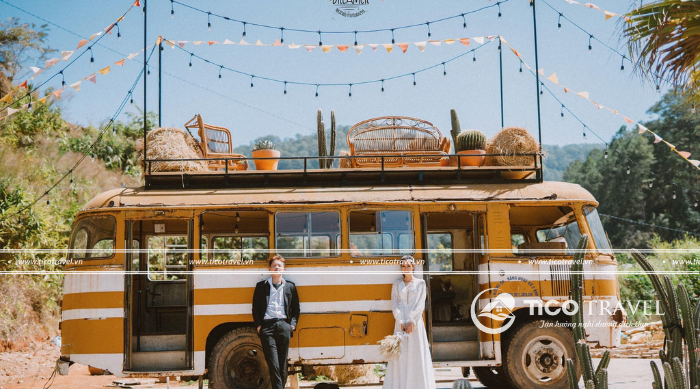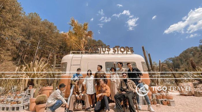 9h45: Điểm đến tiếp theo là Quán coffee Kombi Land: Nơi được mệnh danh là vương quốc xương rồng của Đà Lạt. Đến quán coffee Kombi Land, du khách như lạc vào giữa vùng sa mạc cát vàng óng ánh với vô số góc check in cho bạn tha hồ sống ảo
