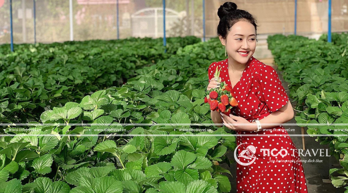 14h30: Tham quan Vườn dâu Tây công nghệ cao