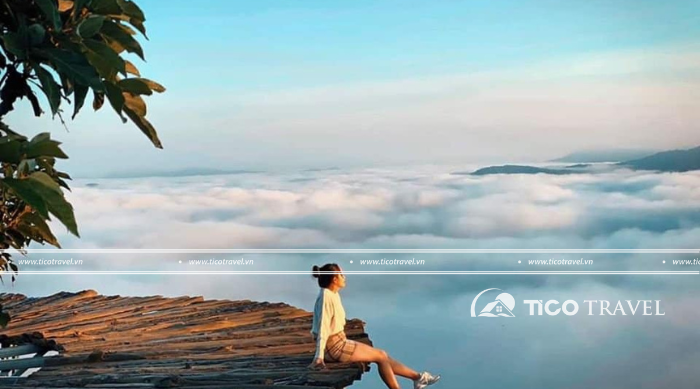 • Đón bình minh trên thảm gỗ săn mây ảo diệu, từ đây quý khách có thể ngắm núi, rừng từ trên cao, bên trên là bầu trời trong xanh, rộng lớn.