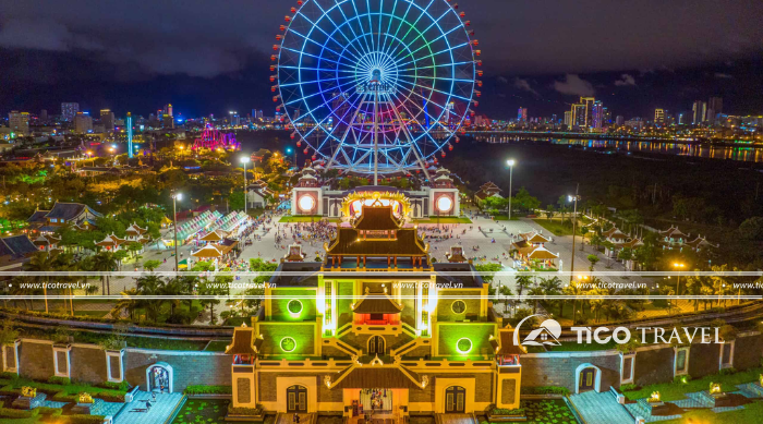 • Ăn tối tại nhà hàng. Có thể tham gia khu vui chơi Asia Park với Vòng quay Mặt trời SUN WHEEL – Nằm trong top 10 vòng quay cao nhất Thế Giới và thưởng thức bữa tiệc ánh sáng về đêm vùng Đà Thành.