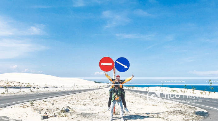 - Khu Du Lịch Bàu Trắng, check in và chụp những bức ảnh kỷ niệm tại Con đường xuyên biển Cát đẹp nhất Việt Nam.