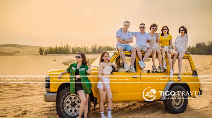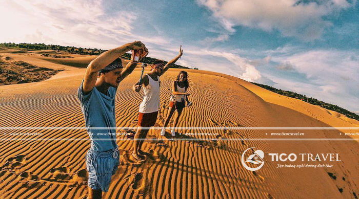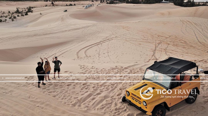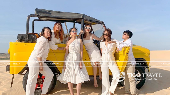 - Xe đưa đoàn đi tham quan Đồi Cát Bay, thưởng thức Dừa Ba Nhát và ngắm khung cảnh nhộn nhịp của Làng chài khi ghe, thuyền đánh bắt cá về bờ. Tự do tham gia các trò chơi sẵn có mà Đồi Cát cung cấp như trượt cát, đi xe mô tô (chi phí tự túc).