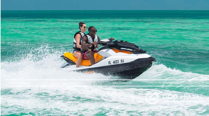 - Khoảng 8:30 sáng, xe và HDV đến đón quý khách ra cảng Cầu Đá. Ca nô đã đứng đợi quý khách từ trước đó để đưa bạn đến Vịnh San Hô hoặc Con Sẻ Tre. Khi đã đến Vịnh San Hô, lên đảo nhận ghế nghỉ ngơi và tự do bơi lội để đắm mình dưới làn nước trong xanh. Đặc biệt, để có thêm trải nghiệm thú vị, có thể thử thách bản thân bằng các trò chơi đem lại cảm giác mạnh như: lặn biển khám phá đại dương, moto nước, chơi dù bay,…