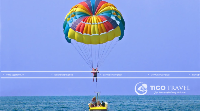 - Đoàn sẽ dừng chân ở Khu du lịch Bãi Dài có tổng diện tích mặt nước 5.000 m2, nằm trong vùng biển đẹp có bãi cát mịn, nước biển trong xanh. Tới đây, tha hồ được trải nghiệm các dịch vụ thể thao trên biển như dù bay, chạy mô tô nước, lướt ván…