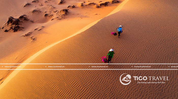 - Sau khi ăn sáng thì đoàn di chuyển lên xe tiếp tục chinh phục đồi Cát Bay. Tại đồi cát sẽ được tham gia trải nghiệm hoạt động trượt cát thú vị và chụp những bức hình lưu niệm cực chất. Ngoài ra còn có cơ hội thưởng thức đặc sản Dừa ba nhát của Mũi Né (chi phí tự túc).