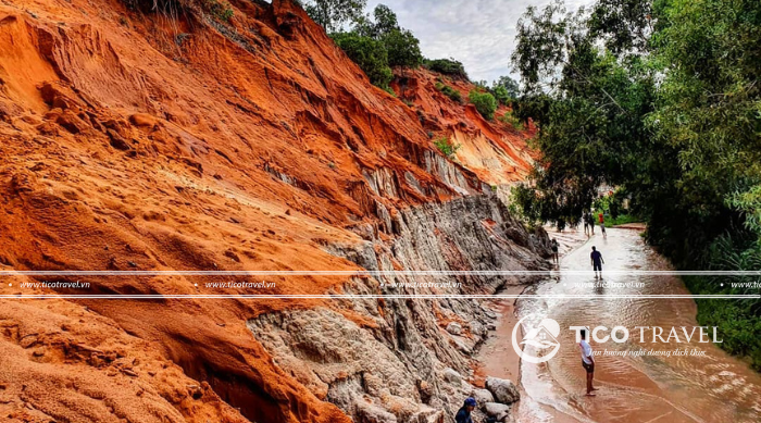 - Di chuyển đến khu du lịch Suối Tiên để được trải nghiệm ngâm đôi chân trần dưới làn nước mát lạnh của suối Tiên, nghe tiếng nước chảy róc rách êm tai và ngắm những đồi cát màu đỏ, cam vô cùng ấn tượng, độc đáo.