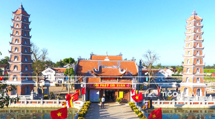 - 10h00: Tiếp tục hành trình quý khách đến tham quan và chiêm bái Chùa Hoằng Phúc. Đây là ngôi chùa cổ xưa nhất miền Trung với tuổi đời hơn 700 trăm nổi tiếng linh thiêng, gắn liền với đời hoằng pháp của Đức vua – Phật hoàng Trần Nhân Tông.