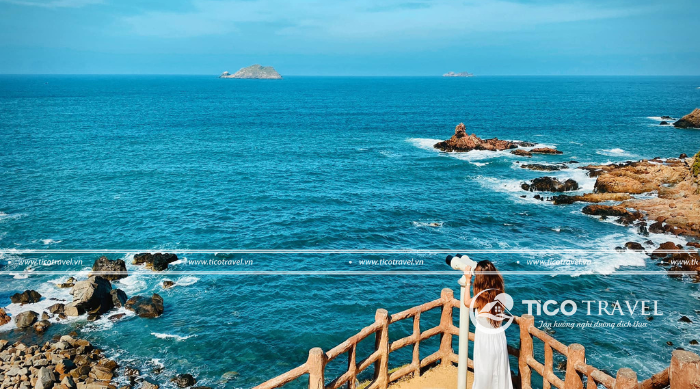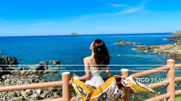 - 09h30: Đến nơi, Quý khách hòa mình vào thiên nhiên, một bên là biển nước màu xanh lam trong vắt. Đừng quên check in tại Cầu Yến, Cầu Trái Tim, Kỳ Co Resort,… và những hang đá, suối nước đẹp đến bất ngờ.