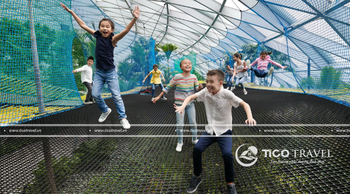 - Đặc biệt, quý khách sẽ được trải nghiệm Sky Net – mạng lưới khổng lồ gồm những chiếc dây dù cứng đan vào nhau, treo lơ lửng ở độ cao 25m so với mặt đất.