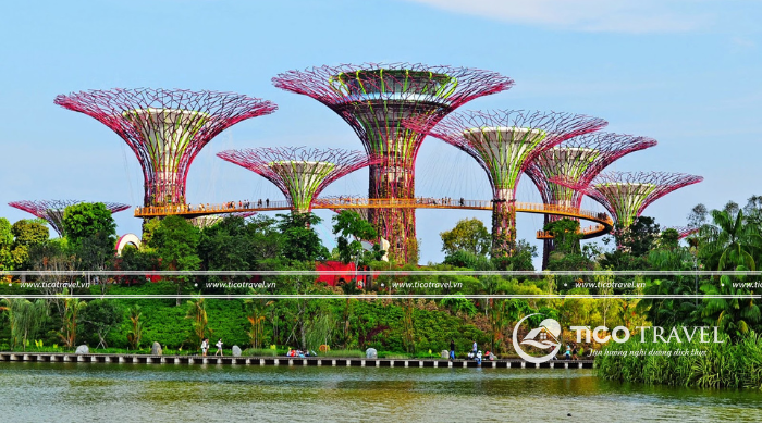 - Trải nghiệm OCBC Skyway – Đường đi bộ trên không, dài 128m nối giữa 2 siêu cây. Từ đây, Quý khách có thể ngắm nhìn toàn bộ khu vườn cũng như khung cảnh thành phố vịnh Marina Bay từ trên cao. (chi phí tự túc)