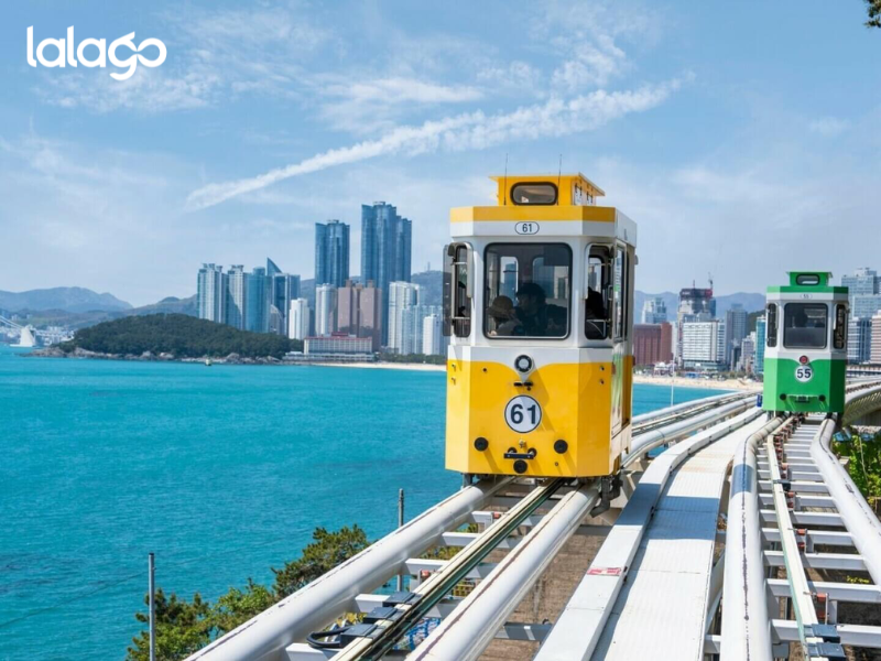 Trải nghiệm đi tàu điện ven biển Haeundae – nơi khách du lịch có thể ngắm toàn cảnh bãi biển Haeundae từ trên cao siêu đẹp ở Busan.