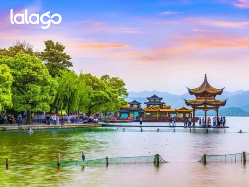 - Thưởng ngoạn du thuyền Tây Hồ Hàng Châu – được xem là đẹp và nên thơ nhất trong hơn 36 hồ có cùng tên ở Trung Quốc, ngắm Quả sơn, Đoạn kiều, Trường kiều, Tô Đê, Bạch Đê, Tam Đàn Ấn Nguyệt và Hoa Cảng Quan Ngư (bên ngoài) gắn liền với những truyền thuyết về Lương Sơn Bá – Chúc Anh Đài, Thanh xà – Bạch xà, và các tác phẩm của nhà thơ Lý Bạch.