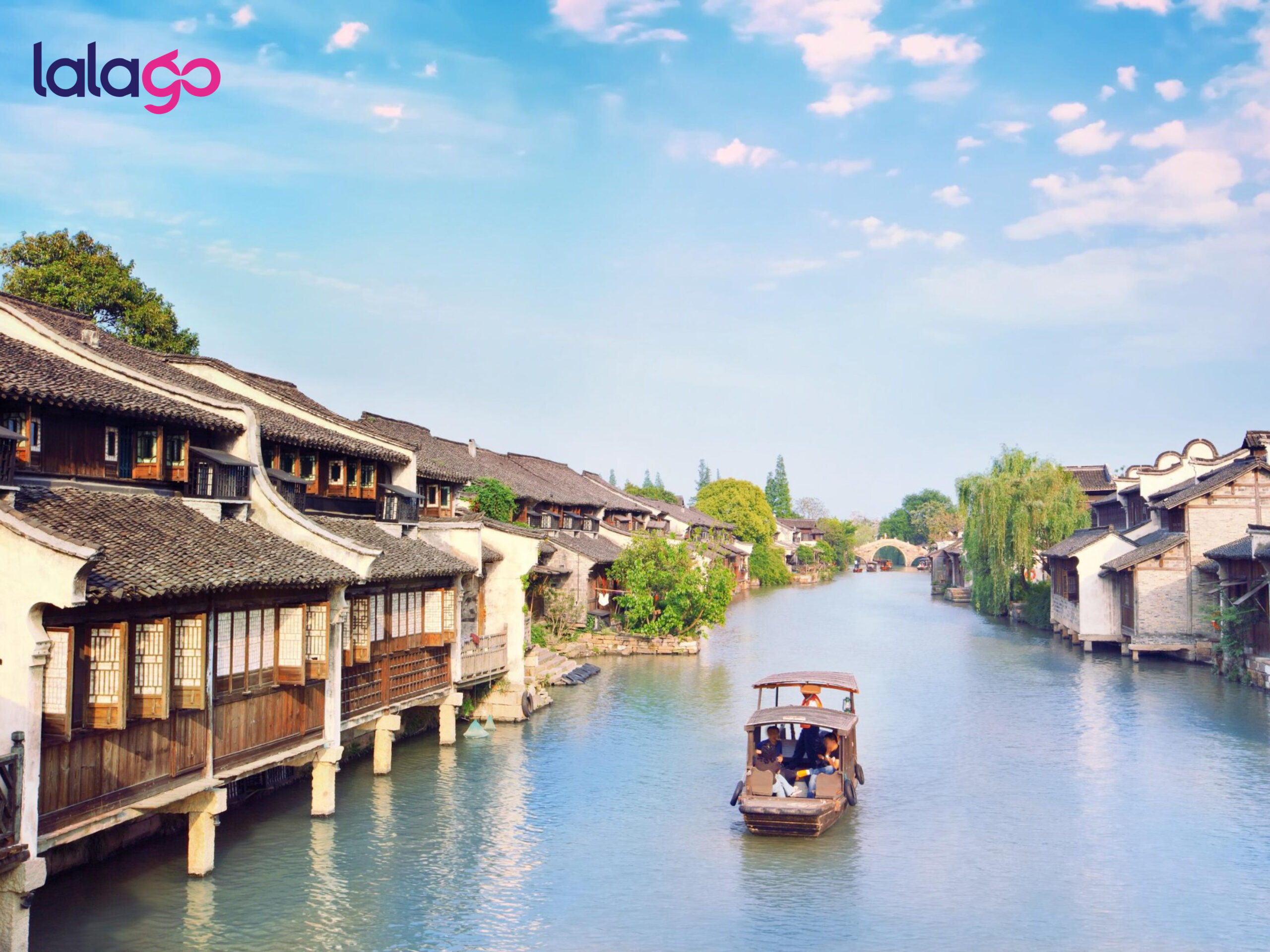 - Quý khách khởi hành đi Ô trấn (Phía Tây) – Ô trấn là một trấn cổ sông nước lớn nhất Trung Quốc với hơn 1300 năm lịch sử thể hiện qua những cây cầu đá cổ, những con đường lát đá và những công trình gỗ chạm khắc tin h tế. Gần như vẫn giữ được kiến trúc cùng tập tục sinh sống hơn 1.000 năm qua nên Ô Trấn trở thành điểm du lịch mà ai cũng muốn đến một lần.
