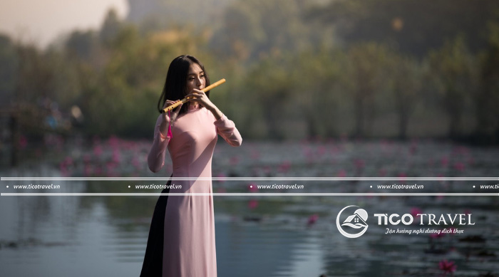 - 09h30: Xe tới bến Đục, quý khách di chuyển đến bến đò, để chuyển sang đi đò dọc theo suối Yến, tại đây có thể vãn cảnh với dòng sông chảy dài ở giữa hai bên núi đá – núi thâm thấp, nước quanh co, như một bức tranh sơn thủy.