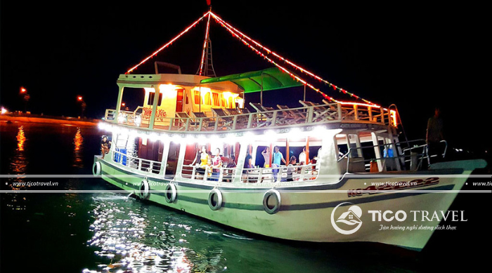 - Quý khách tự do ngắm nhìn biển Phú Quốc về đêm với những ánh đèn lấp lánh từ thành phố và những tàu câu khác, tạo nên khung cảnh tuyệt vời.