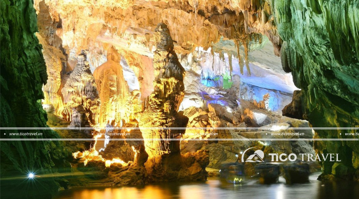- 10h00: Tham quan hang động, chiêm ngưỡng vô vàn khối thạch nhũ khổng lồ với hình thù khác nhau có niên đại hàng triệu năm như cột thạch nhũ hình tháp Champa, tượng Phật Quan Âm, hay nhà rông Tây Nguyên,…