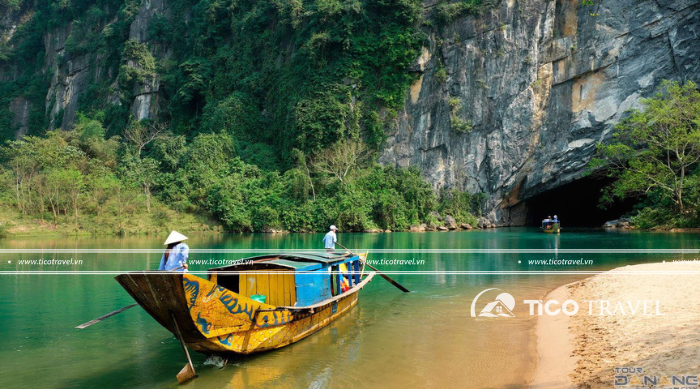 - 13h30: Tiếp tục hành trình khám phá Động Phong Nha “Đệ Nhất kỳ quan”. Quý khách lên thuyền đi dọc dòng sông Son thơ mộng. Khung cảnh thiên nhiên hữu tình ở hai bên bờ sông với hình ảnh sinh hoạt đời thường của xóm làng ven sông chắc chắn sẽ là một trải nghiệm thú vị.