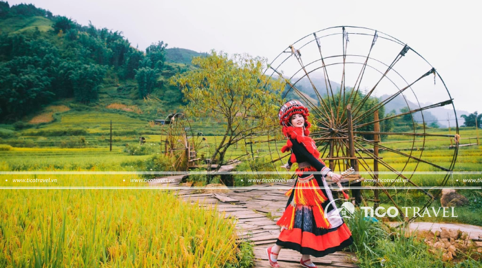 - 15h30: Di chuyển đi Bản Cát Cát – mệnh danh là ngôi làng cổ đẹp nhất nơi núi rừng Tây Bắc. Bản Cát Cát nằm cách thị trấn Sapa 2km, đây chính là nơi sinh sống của đồng bào H’mông Đen. Bạn sẽ được khám phá văn hoá, tập quán, các làng nghề truyền thống và mua sắm đồ lưu niệm thổ cẩm về làm quà như khăn, váy, áo, túi xách…