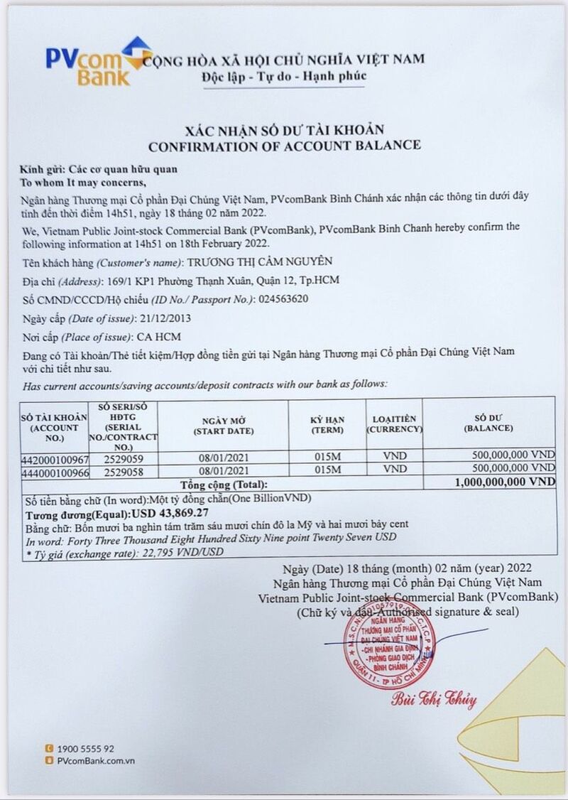 - Giấy xã nhận được số dư trong tài khoản ngân hàng (ít nhất 70 triệu VNĐ).