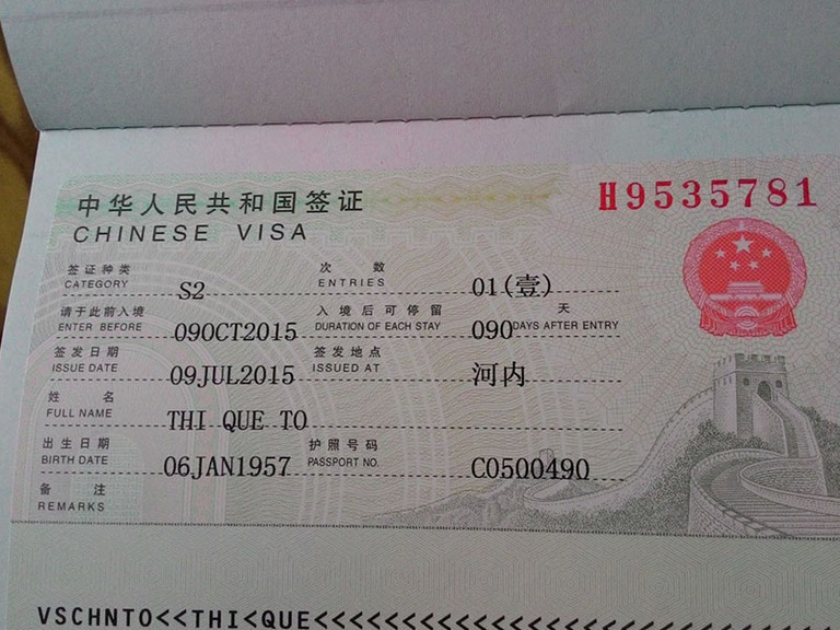 - Đơn xin cấp visa theo đúng mẫu của Tổng lãnh sự Quán Trung Quốc